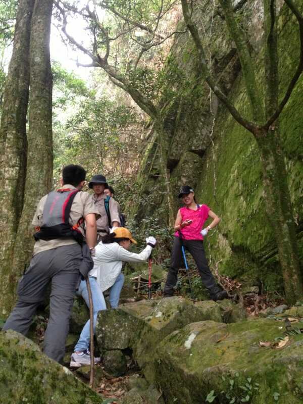 周末,好友相約,登頂大明山早。上十點(diǎn)從南寧出發(fā),經(jīng)過一個(gè)小時(shí)車程到達(dá)大明山腳。當(dāng)我們站在山腳仰望山頂時(shí),心中對挑戰(zhàn)極限充滿了渴望。不管多么遠(yuǎn)、多么高、多么陡、多么險(xiǎn),開始攀登,才發(fā)覺,每前進(jìn)一步,眼前的風(fēng)景決然不同,直有直的筆挺,曲有曲的險(xiǎn)峻,險(xiǎn)有險(xiǎn)的俊秀,高有高的視野!就這樣,我們懷著好奇,帶著已知和未知的肯定與否定,開始一路攀爬。上山的路愈發(fā)陡峭、危險(xiǎn),漸漸地,大伙的體力開始不支,大腿灌了鉛似的變得越來越沉。同行的小伙伴感嘆這是登山還是攀巖,大家手腳并用,每前進(jìn)一步,都感覺無比艱辛。其中一個(gè)小伙伴開始動搖,想放棄,但是團(tuán)隊(duì)登頂?shù)男拍?,讓我們不允許放棄,大家相互鼓勵(lì),相互攙扶,堅(jiān)持登頂。